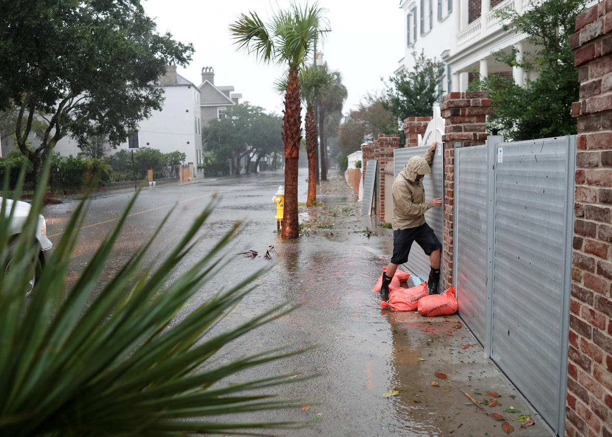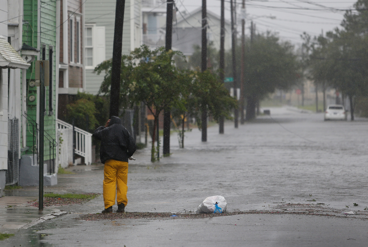 A man checks on flooding around his home along Aiken Street during Hurricane Dorian in Charleston, South Carolina, U.S., September 5, 2019. REUTERS/Randall Hill
