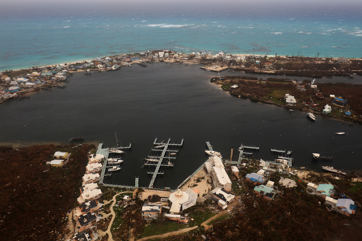 Aerial video of the Abaco Islands in the northern Bahamas, worst hit by the then-Category 5 hurricane, showed widespread devastation, with the harbor, shops and workplaces, a hospital and airport landing strips damaged or decimated.