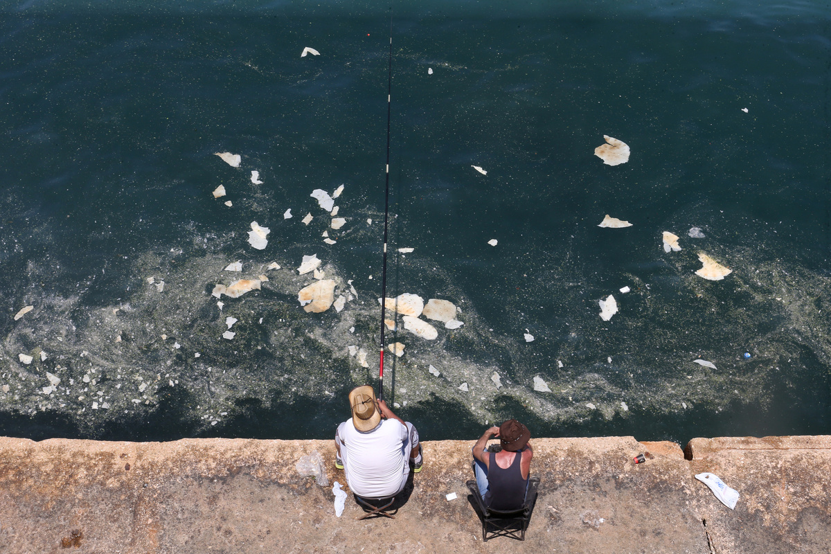 Fishermen dangle their lines each day off Beirut's seaside Corniche, either selling their catch or taking it home to eat. But the water there is washed with trash and little slicks of oil give a rainbow sheen to the waves.