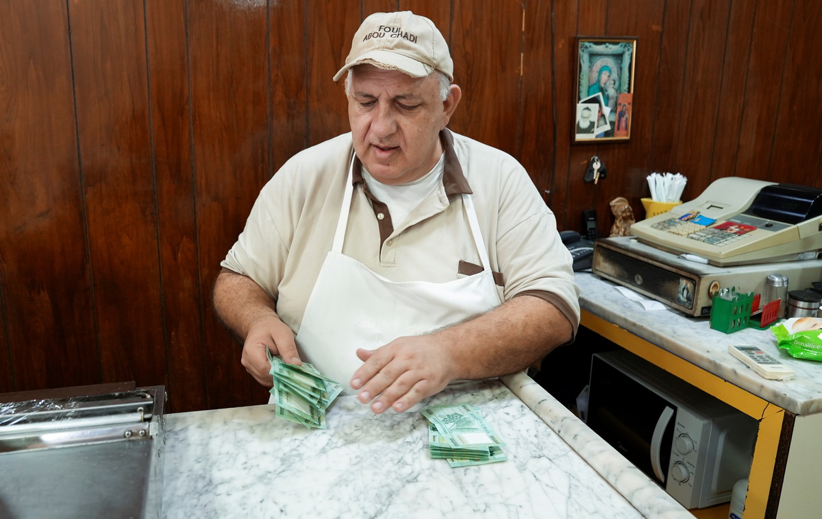 Grocery store owner Roni Bou Rached has changed the way he stores money in his cash drawer now that smaller notes are used less, and coins are almost non-existent.