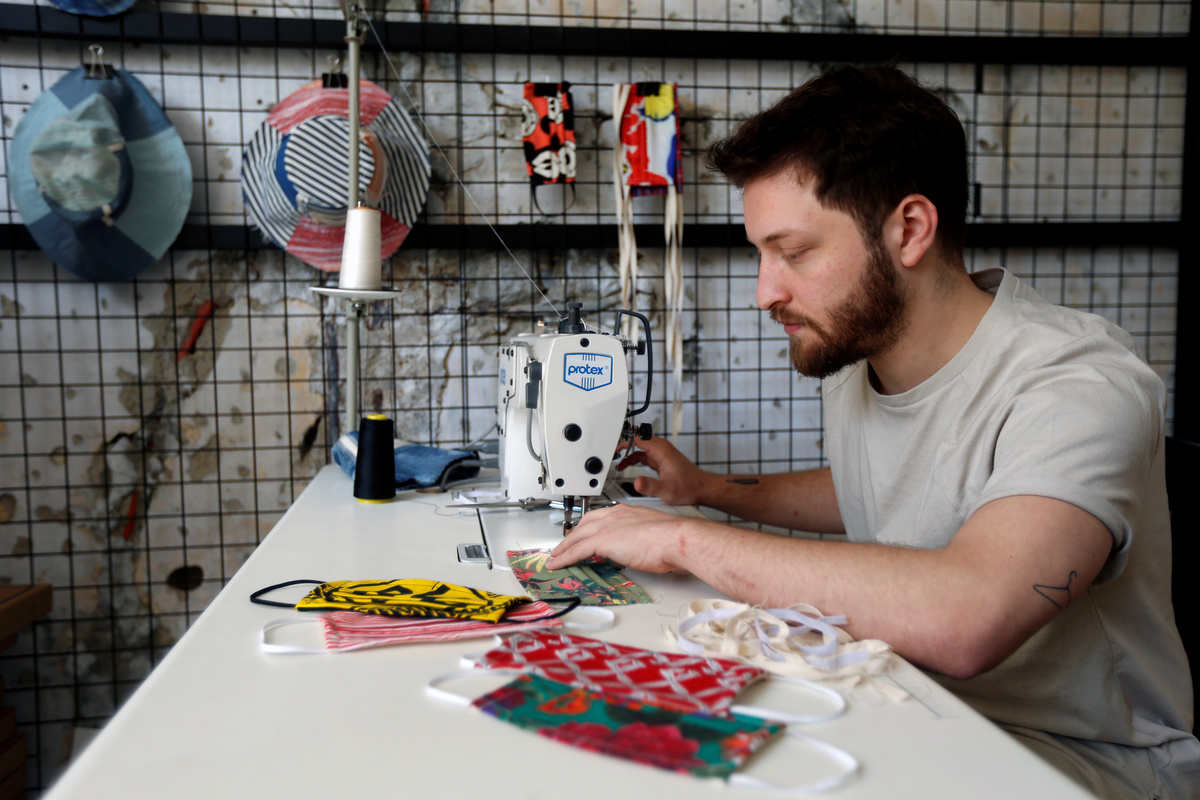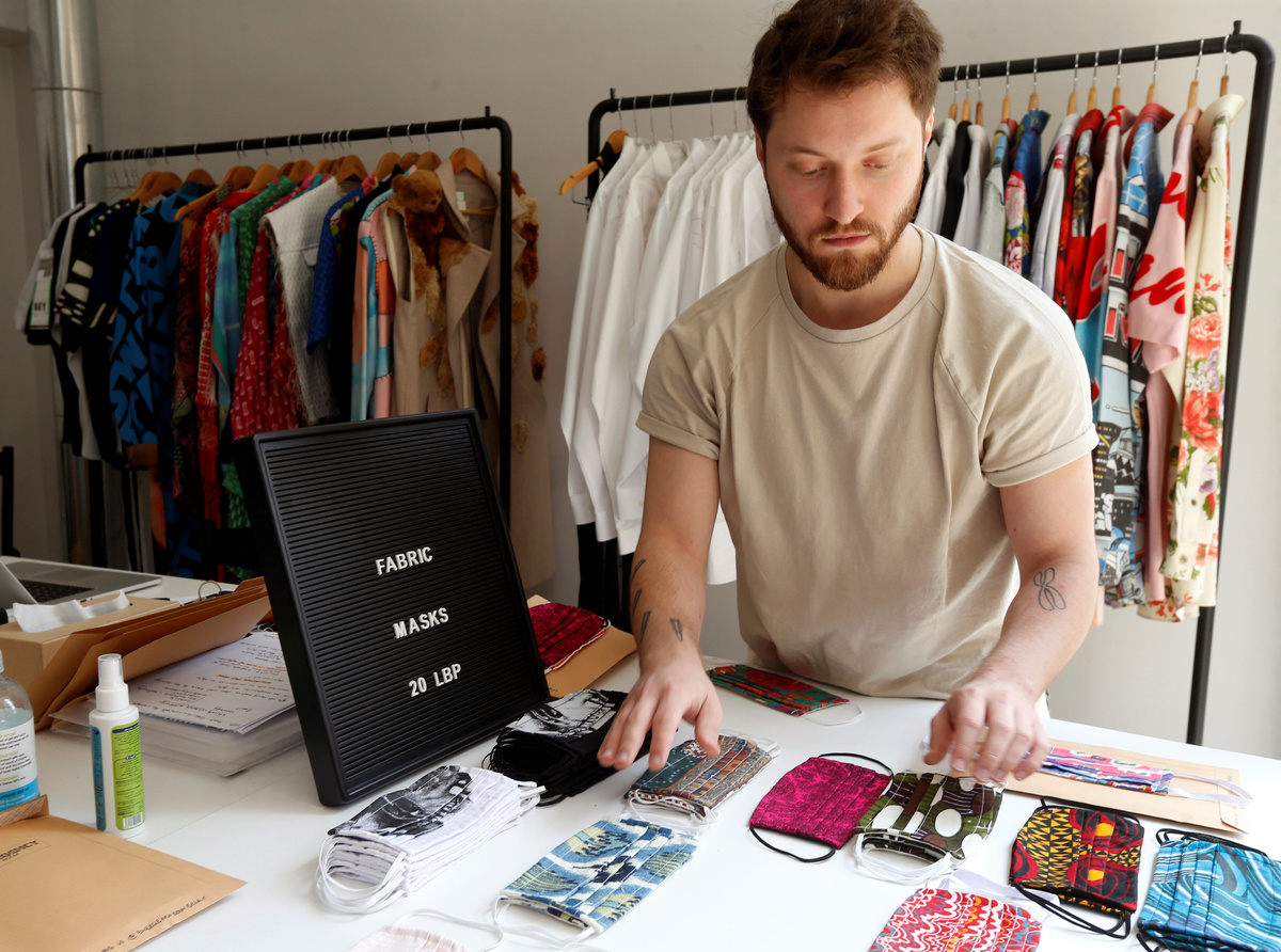 Beirut-based designer Bokja specializes in making upholstered furniture with vintage fabric but the studio's workers now dedicate their time to sewing colourful silk face masks to curb the spread of the new coronavirus.