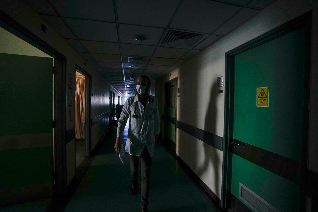 Drenched in sweat, doctors check patients lying on stretchers in the reception area of Lebanon’s largest public hospital. Air conditioners are turned off, except in operating rooms and storage units, to save on fuel.