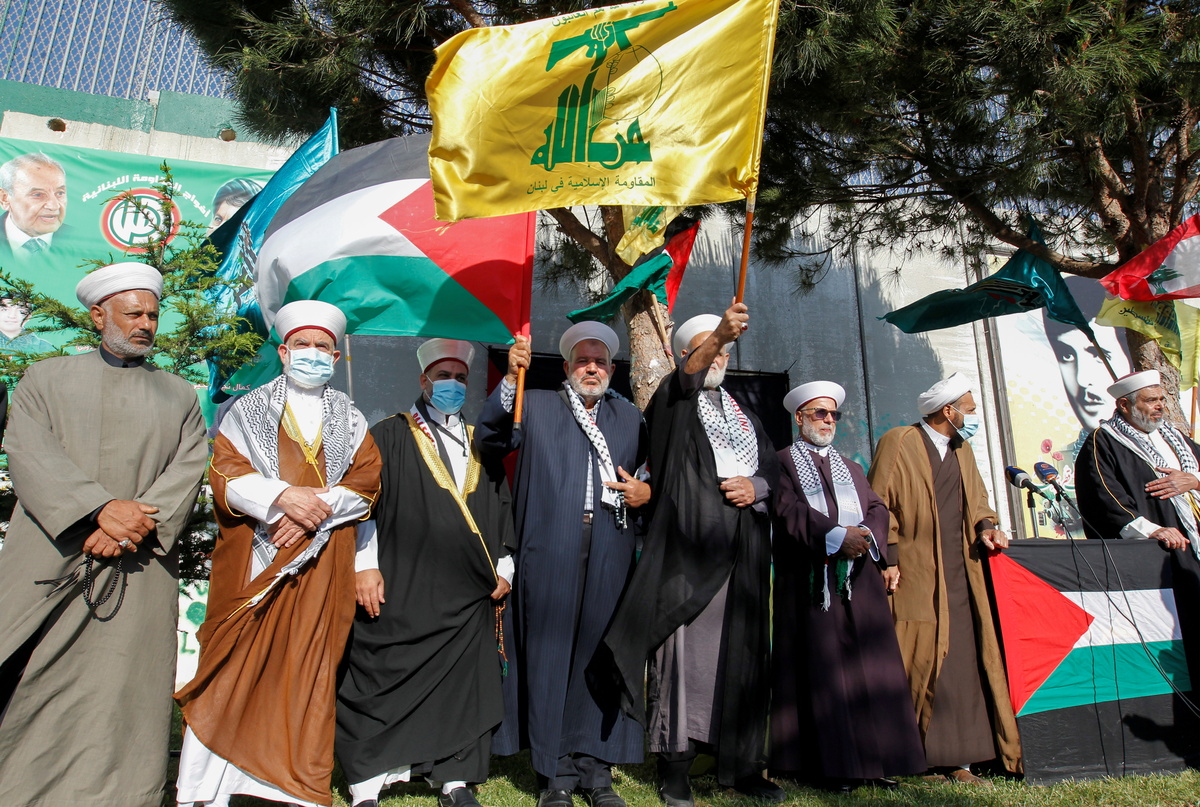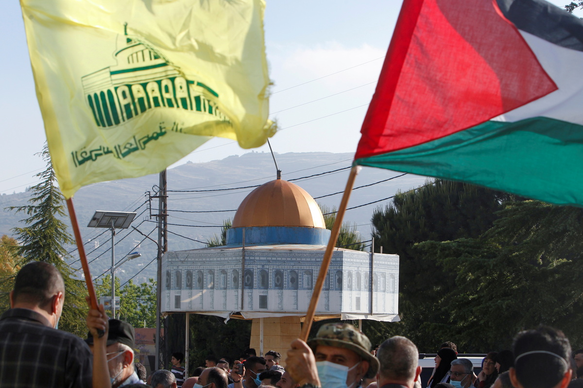 The Lebanese protesters had gathered close to the border fence, waving flags, including the Palestinian national flag and the flag of Lebanon's Iran-backed Hezbollah movement, a staunch opponent of Israel.