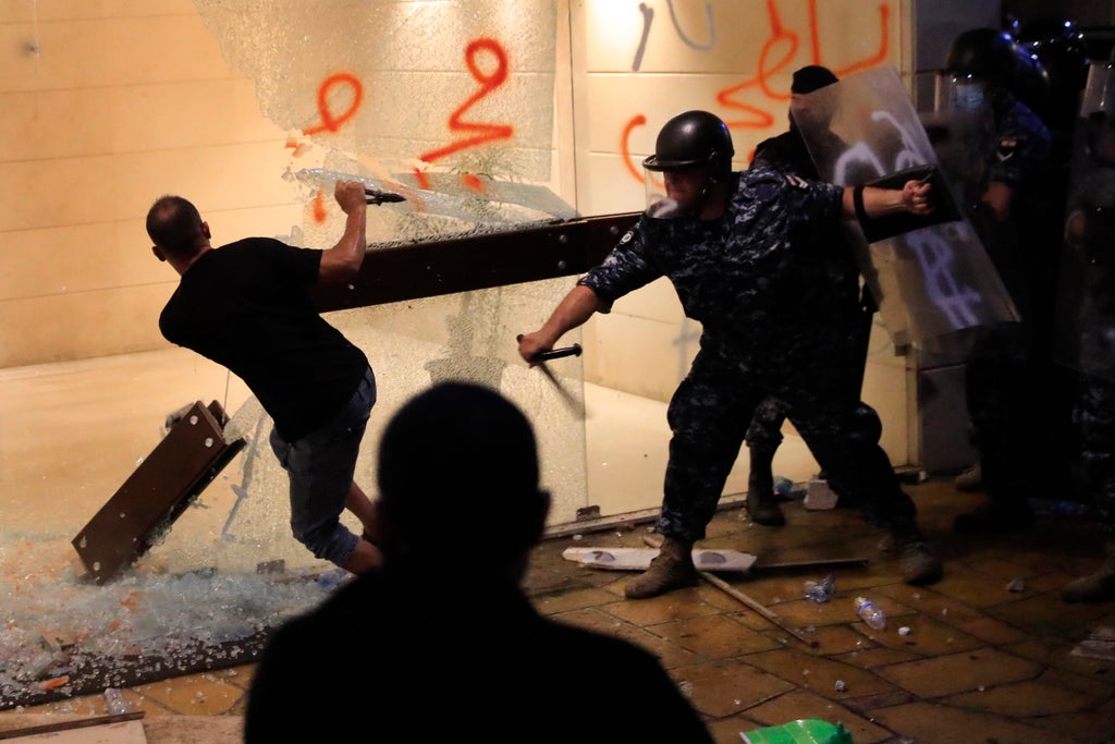 Angry protests outside the house of the interior minister of the caretaker government Tuesday lasted for hours. Families of the victims and explosion survivors held a mock funeral and burial outside his home. Protesters scuffled with security forces guarding the building, who fired tear gas to disperse the crowd. Dozens of protesters and security forces were lightly injured.