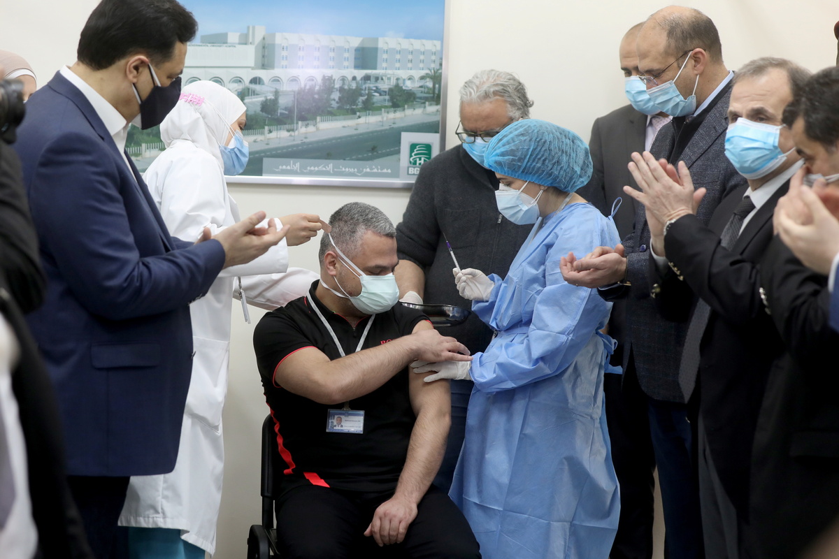 Lebanon started its COVID-19 vaccination drive on Sunday by inoculating the head of critical care at its biggest public hospital, followed by 93-year-old celebrated Lebanese actor and comedian Salah Tizani.