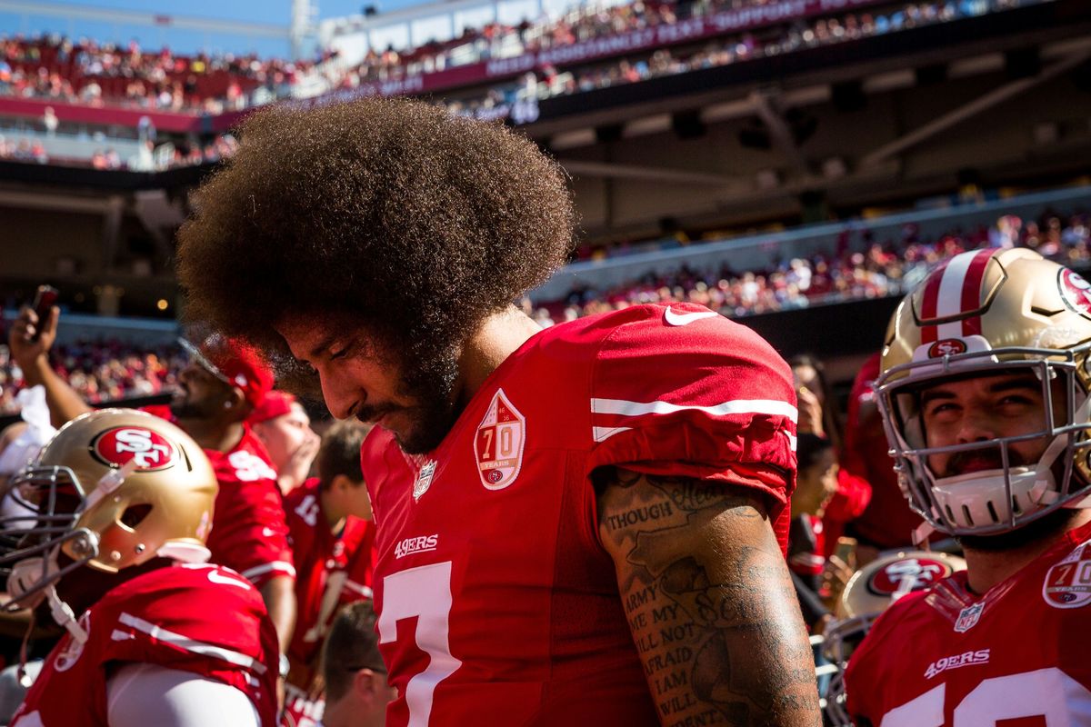 Kaepernick popularized the gesture of kneeling during pre-game renditions of "The Star-Spangled Banner" in 2016 while a member of the San Francisco 49ers. He became a free agent after that season and has not been signed by another team since.