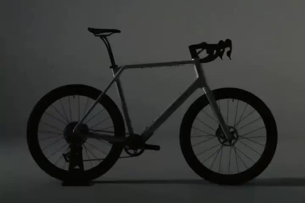 Then the teasing really begins. The clip glitches to a darkened, studio-shot silhouette of what appears to be a road or gravel bike. A close-up shot then reveals a white Canyon downtube and some knobby tyres, followed by a rapid cut to a custom, basketball-themed logo and the nomenclature ‘R126’ – the same code found on the seat tube of the current Grizl gravel bike.