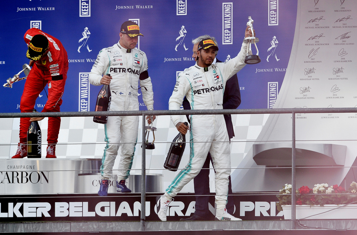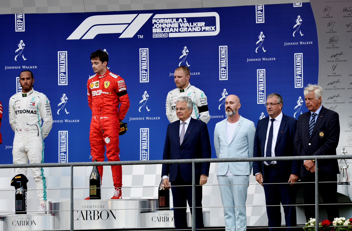 His team mate Max Verstappen collided with Kimi Raikkonen at the start before retiring on the opening lap in an incident that brought out the safety car. Antonio Giovinazzi crashed his Alfa Romeo on the exit of the Pouhon corner as the leaders came through on their final lap.