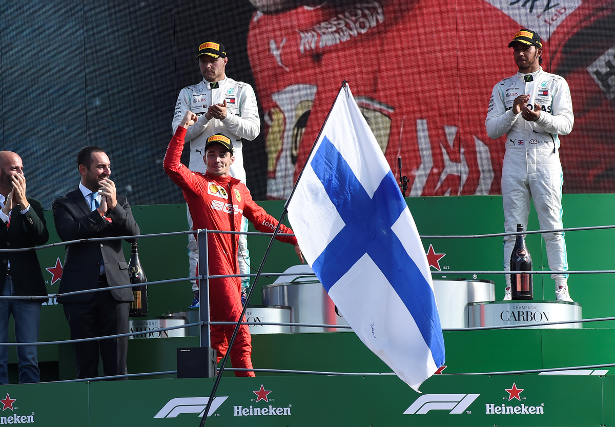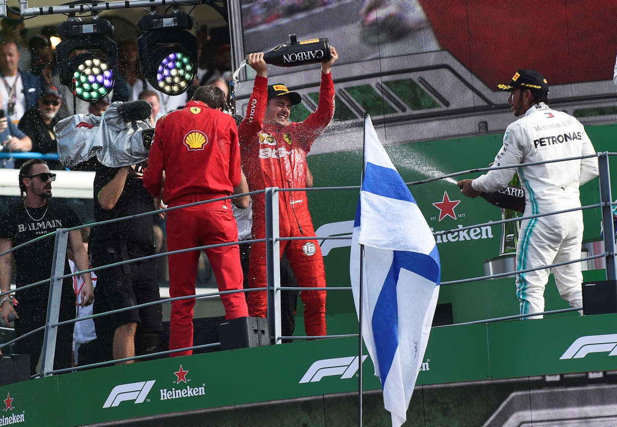 "This is your win," he was told over the radio but a mistake three laps from the end primed the Ferrari 'tifosi' for the party as Leclerc took the chequered flag first for the second time in eight days.