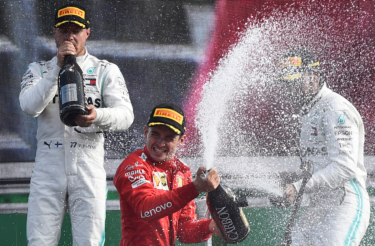 "What a race! I have never been so tired," gasped Leclerc as a sea of fans, starved of success at Monza since Fernando Alonso won in the red overalls, swept onto the pit straight to party below the overhanging podium with flags and flares.