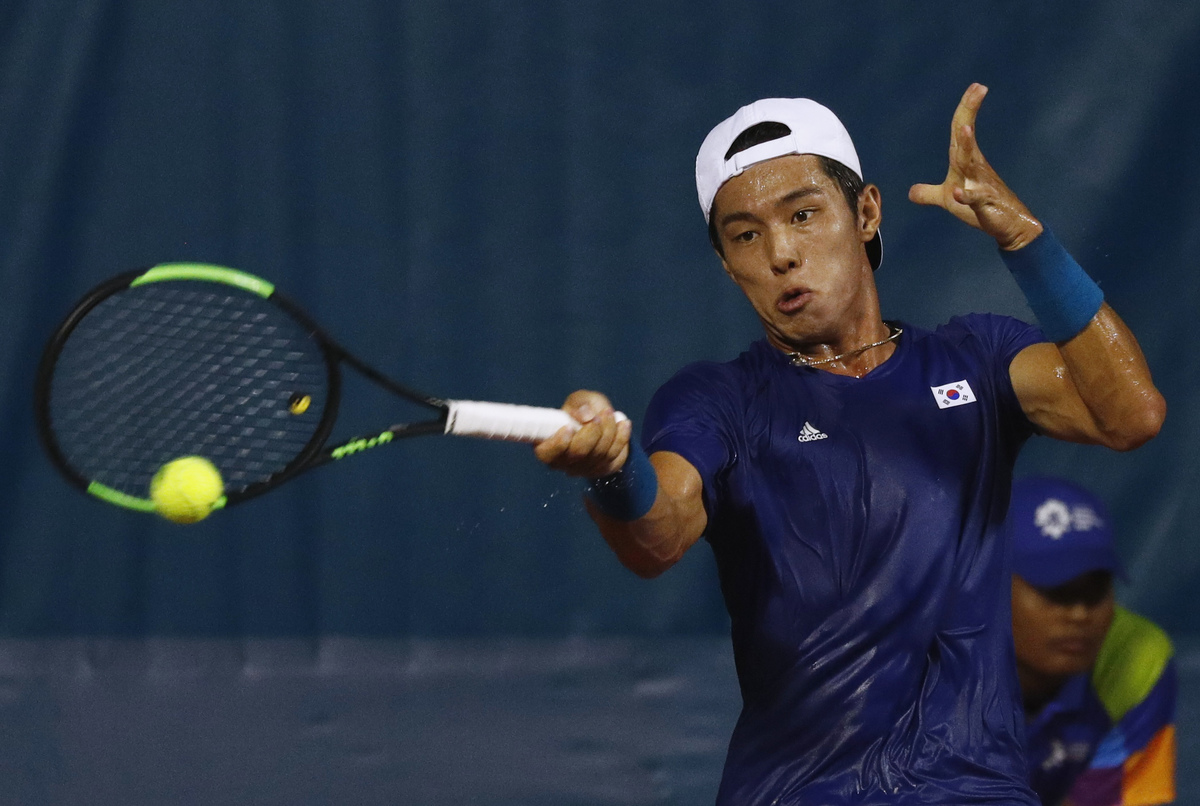 (Reuters) - Lee Duck-hee became the first deaf player to win an ATP Tour main draw match on Monday when the South Korean defeated Henri Laaksonen 7-6(4) 6-1 in the first round of the Winston-Salem Open.