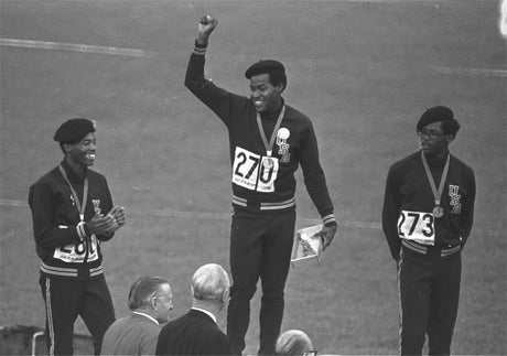 In the 200m race at the summer games in Mexico City, Smith and Carlos placed first and third. On the medal stand, they wore black socks without shoes to symbolise black poverty, then raised their black-gloved fists during the playing of the national anthem while gazing downward.