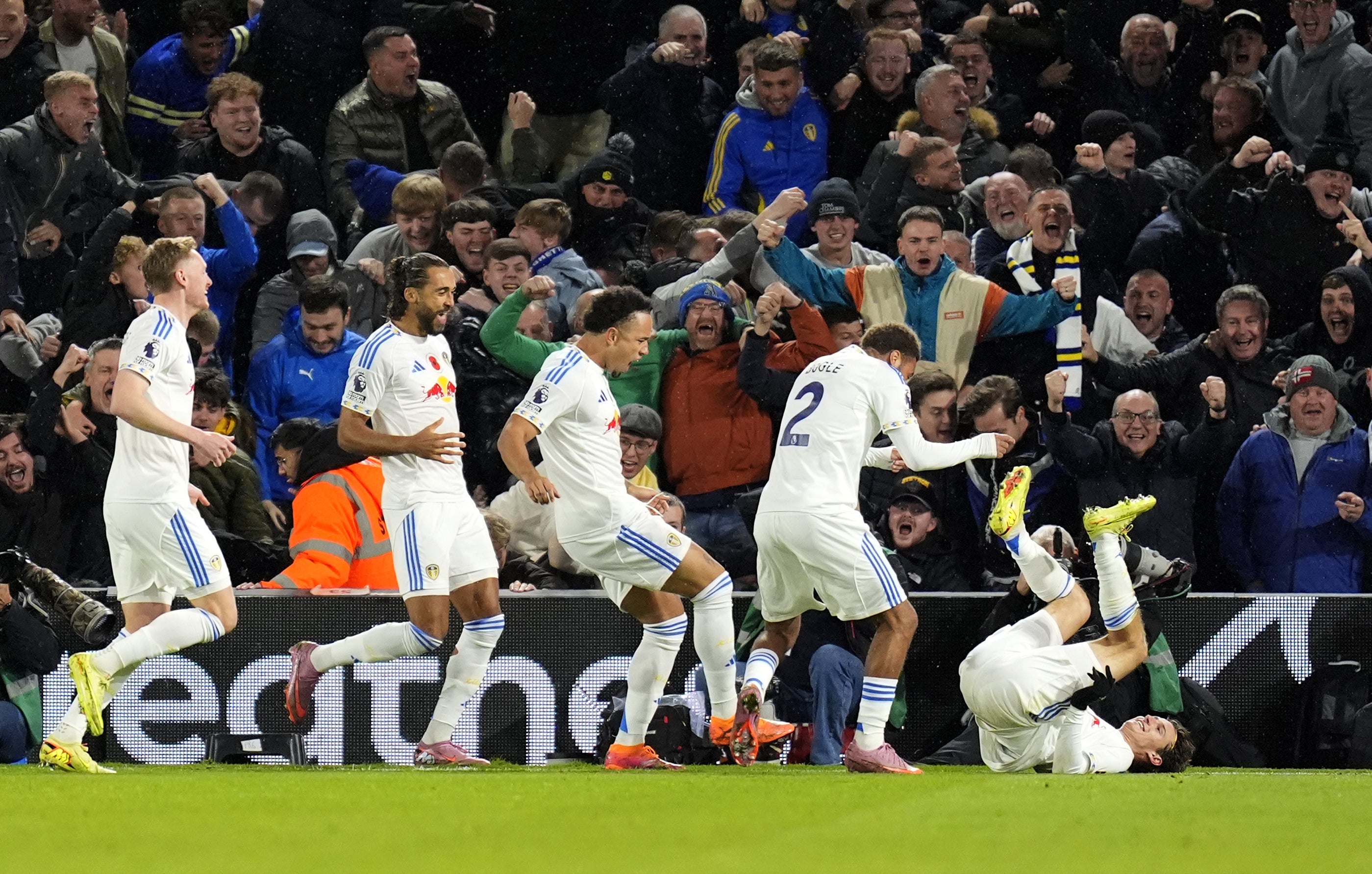 Leeds, whose 23-game unbeaten home league run was halted by Tottenham in their previous match at Elland Road, stormed into a third-minute lead.