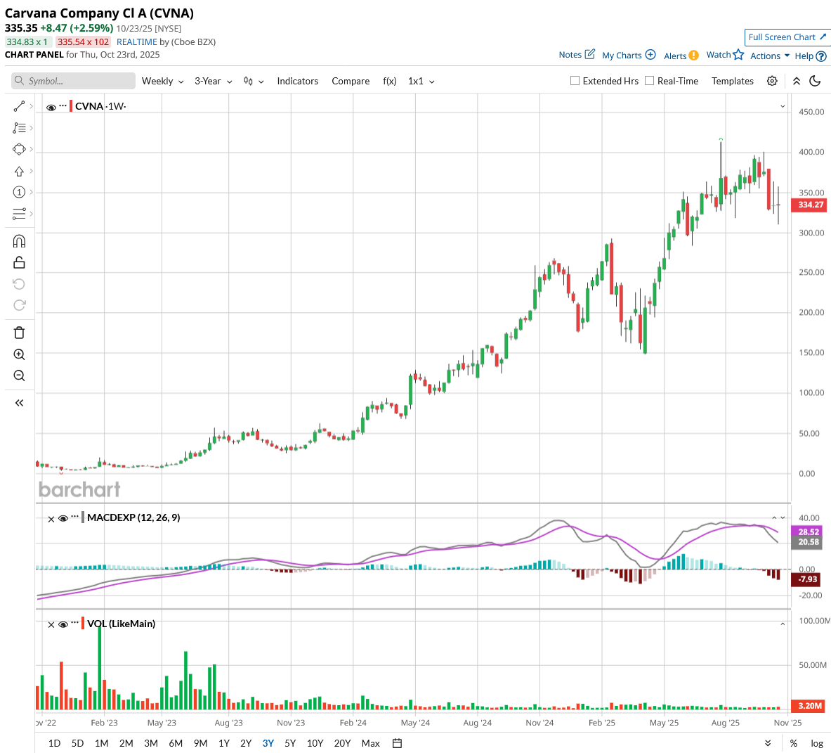 The average selling prices on the platform rose 5% to $26,300, outpacing industry trends, while website traffic increased 22% last month. Carvana is well-positioned to capitalize on the digital shift in the $800 billion used car market. But let’s see if CVNA stock is a good buy right now.