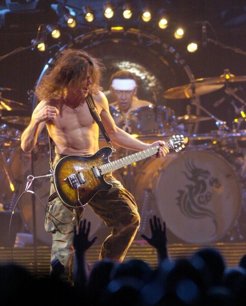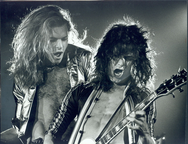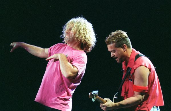 Sammy Haggar (left), & Eddie Van Halen, (right) perform with Van Halen at Forum Tues nite, April 4, 1995. (Gary Friedman/The Los Angeles Times/TNS)