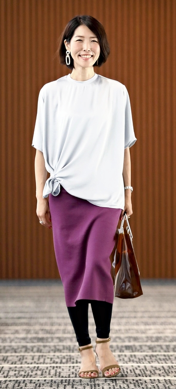 For example, if you match black leggings with a shiny shirt and below-the-knee tight purple skirt, a breezy impression is added to the elegant and chic coordinates.