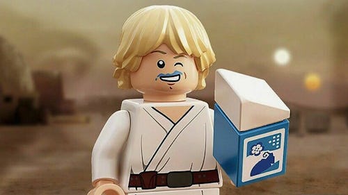 To be fair to collectors, while there are plenty of Luke Skywalker Lego figurines out there, this one comes with blue milk and a milk mustache, which is quite charming. If you can't find the deluxe edition in stores or online, fear not — there's currently a rumor in the Lego community that Blue Milk Luke will be given away along with other Lego products on May 4, aka Star Wars Day. (Who says we don't get new holidays?)