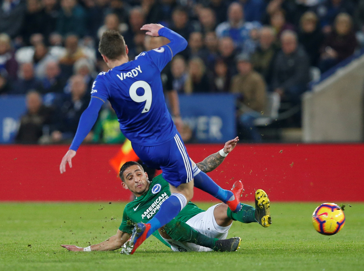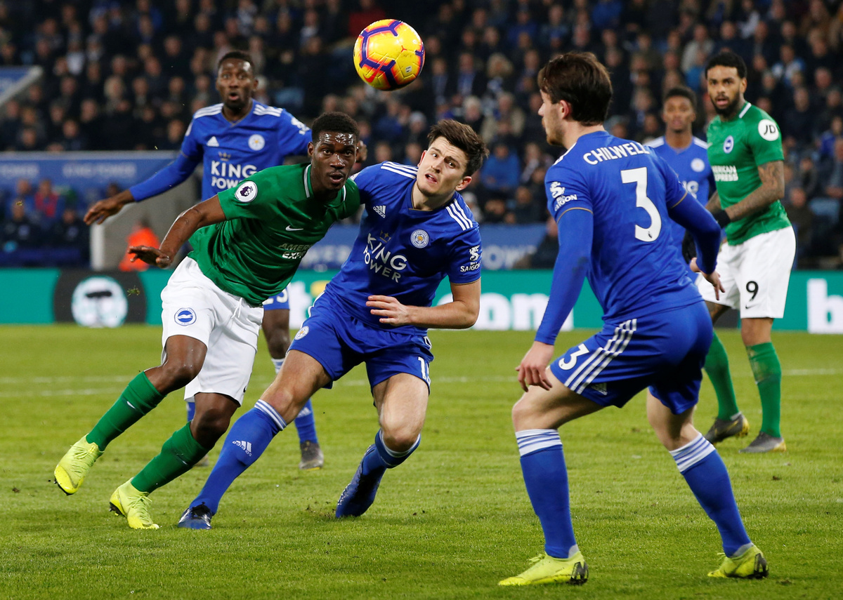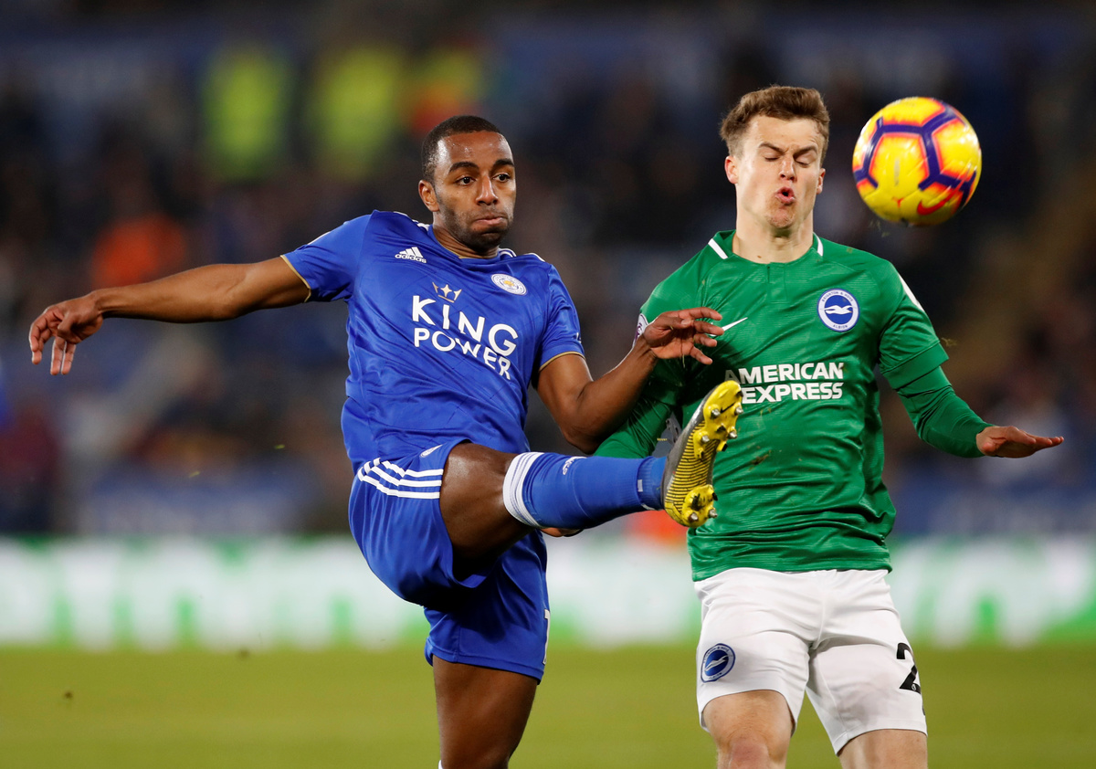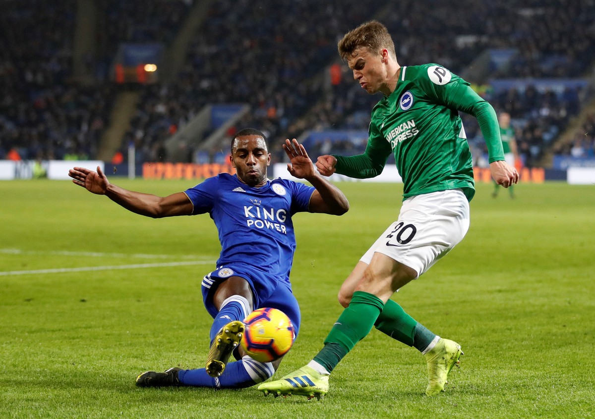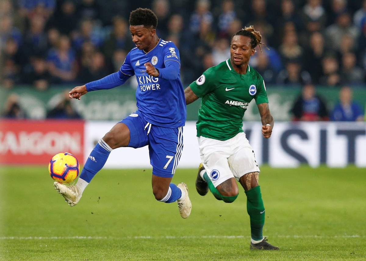 Soccer Football - Premier League - Leicester City v Brighton & Hove Albion - King Power Stadium, Leicester, Britain - February 26, 2019 Leicester City's Ricardo Pereira in action with Brighton's Solly March Action Images via Reuters/Carl Recine Soccer Football - Premier League - Leicester City v Brighton & Hove Albion - King Power Stadium, Leicester, Britain - February 26, 2019 Brighton's Davy Propper scores their first goal REUTERS/Andrew Yates Soccer Football - Premier League - Leicester City v Brighton & Hove Albion - King Power Stadium, Leicester, Britain - February 26, 2019 Brighton's Yves Bissouma in action with Leicester City's Harry Maguire REUTERS/Andrew Yates Soccer Football - Premier League - Leicester City v Brighton & Hove Albion - King Power Stadium, Leicester, Britain - February 26, 2019 Leicester City's Ricardo Pereira in action with Brighton's Solly March Action Images via Reuters/Carl Recine Soccer Football - Premier League - Leicester City v Brighton & Hove Albion - King Power Stadium, Leicester, Britain - February 26, 2019 Leicester City's Demarai Gray scores their first goal REUTERS/Andrew Yates Soccer Football - Premier League - Leicester City v Brighton & Hove Albion - King Power Stadium, Leicester, Britain - February 26, 2019 Leicester City's Jamie Vardy in action with Brighton's Anthony Knockaert REUTERS/Andrew Yates Soccer Football - Premier League - Leicester City v Brighton & Hove Albion - King Power Stadium, Leicester, Britain - February 26, 2019 Leicester City's Demarai Gray in action with Brighton's Gaetan Bong REUTERS/Andrew Yates Soccer Football - Premier League - Leicester City v Brighton & Hove Albion - King Power Stadium, Leicester, Britain - February 26, 2019 Leicester City new manager Brendan Rodgers, chairman Aiyawatt Srivaddhanaprabha and England manager Gareth Southgate in the stands REUTERS/Andrew Yates