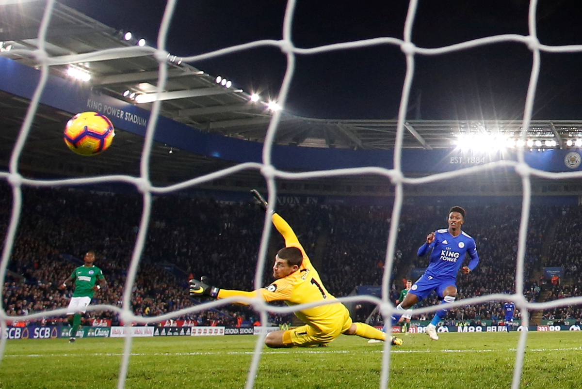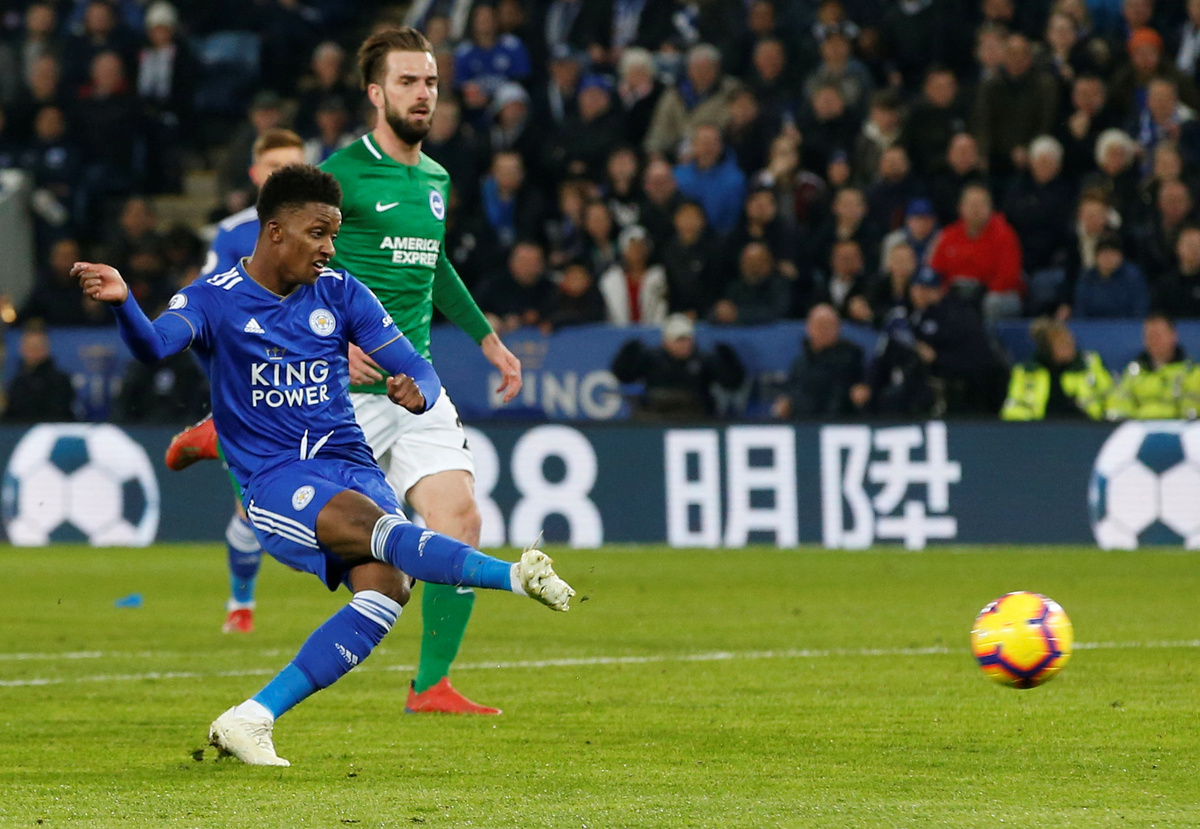 Soccer Football - Premier League - Leicester City v Brighton & Hove Albion - King Power Stadium, Leicester, Britain - February 26, 2019 Leicester City's Demarai Gray scores their first goal REUTERS/Andrew Yates
