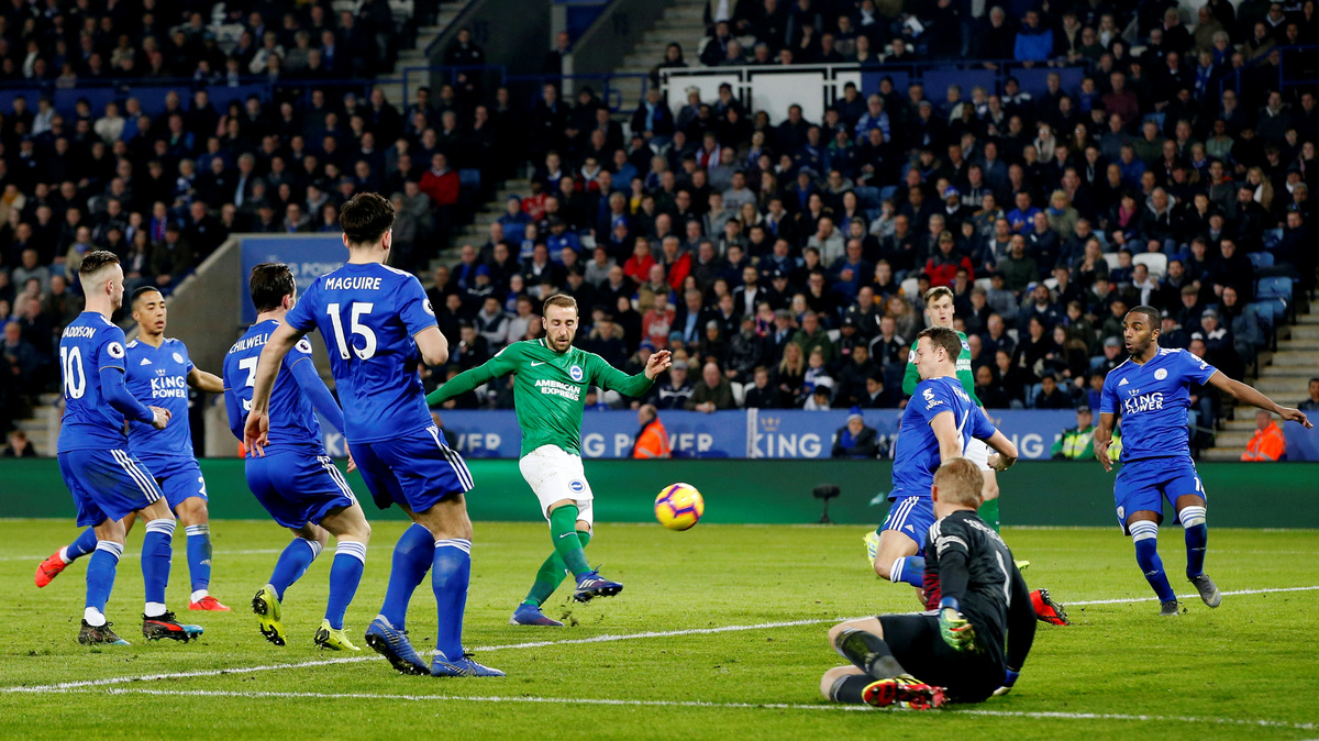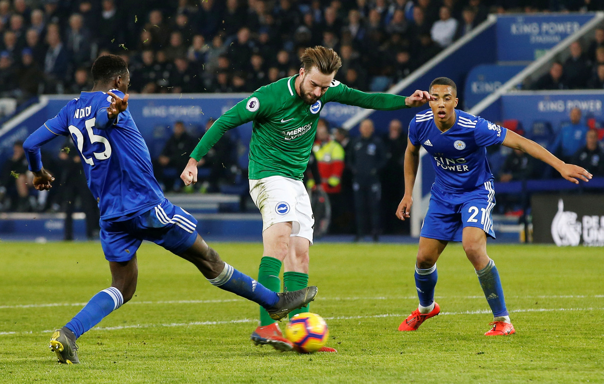 Brighton responded quickly though and reduced the deficit three minutes later as Davy Propper rifled a shot past Kasper Schmeichel after wrong-footing Tielemans.