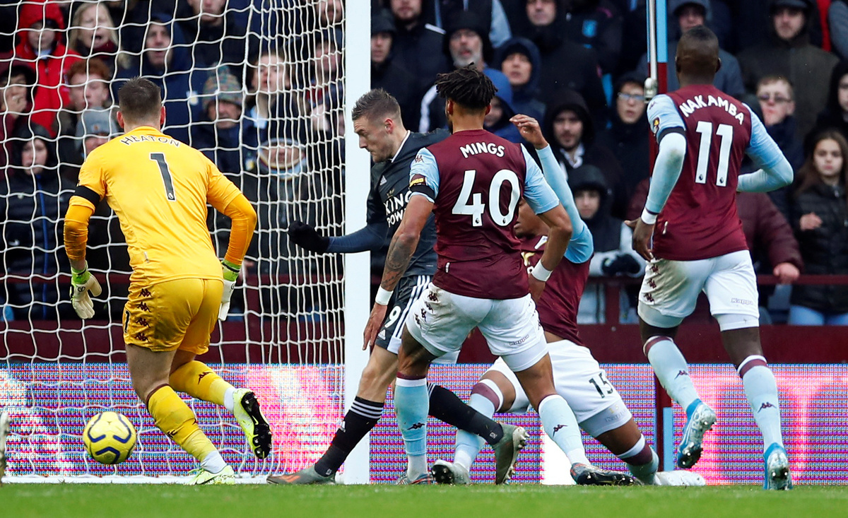 The league's top scorer Vardy fired Leicester ahead with his 15th goal of the season in the 20th minute when he shook off Ezri Konsa and slotted the ball in after rounding goalkeeper Tom Heaton with a sublime first touch.