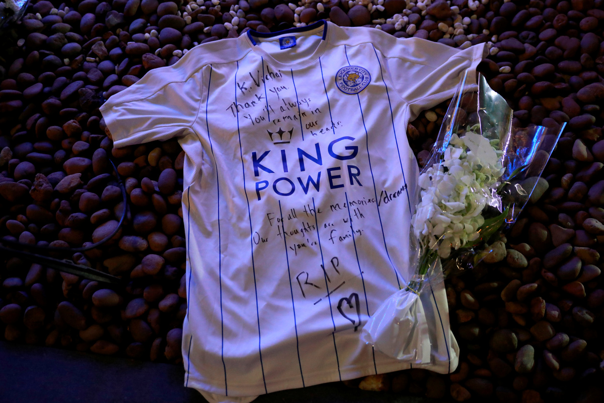 Hundreds of fans laid flowers, football shirts and scarves outside the stadium in tribute to Vichai on Sunday.