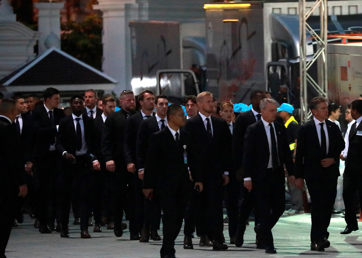 Leicester City players attend funeral of late owner in Thailand
