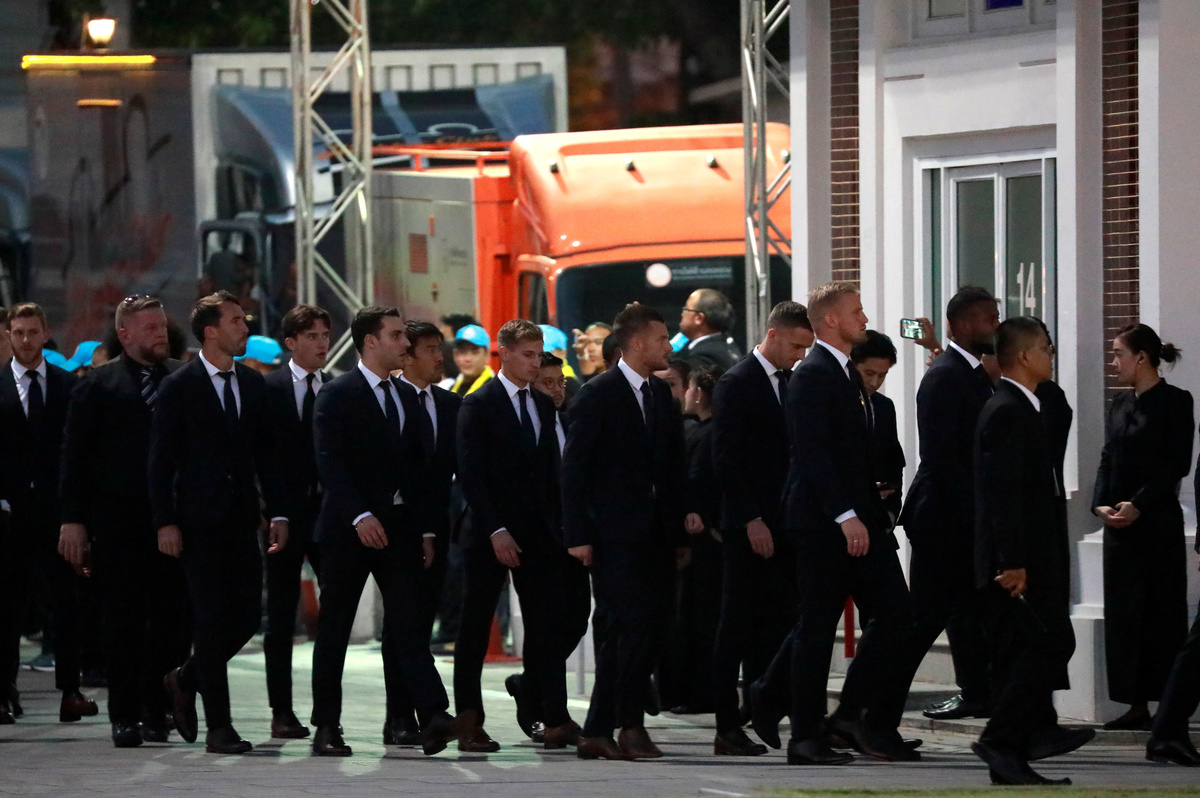 Leicester City players arrive to owner Thai businessman Vichai Srivaddhanaprabha's funeral in Bangkok, Thailand November 4, 2018. REUTERS/Soe Zeya Tun