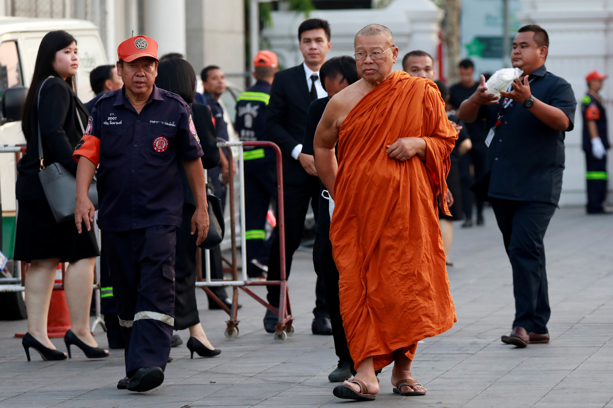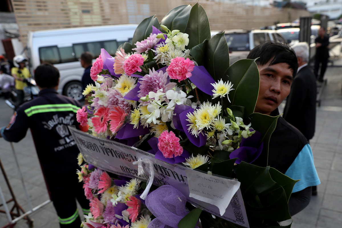 A Buddhist monk walks outside the temple where Leicester City owner Thai businessman Vichai Srivaddhanaprabha has his funeral in Bangkok, Thailand November 4, 2018. REUTERS/Soe Zeya TunA woman walks in front of the temple where Leicester City owner Thai businessman Vichai Srivaddhanaprabha has his funeral in Bangkok, Thailand November 4, 2018. REUTERS/Soe Zeya TunA man carries flowers at the temple where Leicester City owner Thai businessman Vichai Srivaddhanaprabha has his funeral in Bangkok, Thailand November 4, 2018. REUTERS/Soe Zeya TunA man carries flowers at the temple where Leicester City owner Thai businessman Vichai Srivaddhanaprabha has his funeral in Bangkok, Thailand November 4, 2018. REUTERS/Soe Zeya TunA man gives the final touches outside a temple where Leicester City owner Thai businessman Vichai Srivaddhanaprabha has his funeral in Bangkok, Thailand November 4, 2018. REUTERS/Soe Zeya Tun