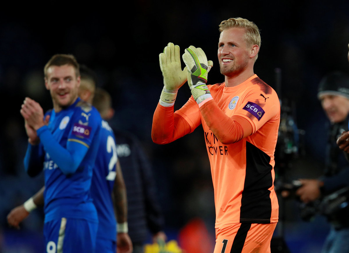 The hosts opened the scoring in the 18th minute when Jamie Vardy smashed in Riyad Mahrez's right wing cross. Their lead was doubled 11 minutes later when Everton defender Jonjoe Kenny sliced Demarai Gray's left wing cross into his own net.