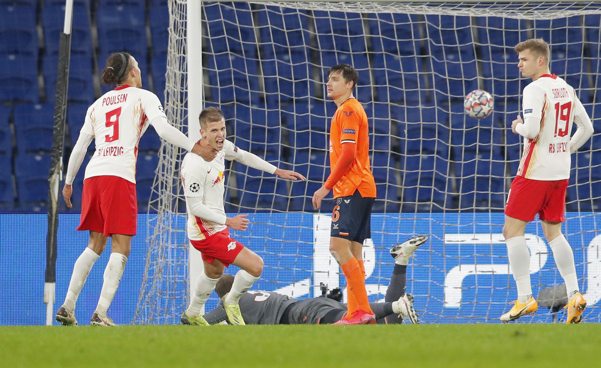 Leipzig, semi-finalists last season, are on nine points, level with leaders Manchester United who face Paris St Germain, on six, later. Basaksehir are eliminated from the Champions League.