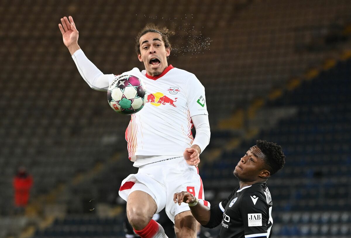 Arminia's Stefan Ortega pulled off a pair of fine saves to deny Emil Forsberg and Christopher Nkunku, diverting the latter's fierce shot on to the bar shortly before halftime.