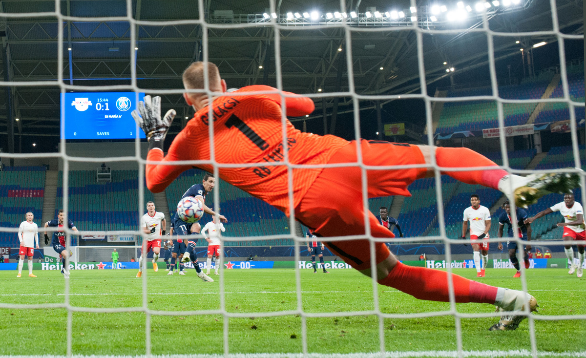 PSG made a bright start as Di Maria gave them a sixth-minute lead, threading the ball past goalkeeper Peter Gulacsi with the outside of his foot from close range after he was put through by Moise Kean.