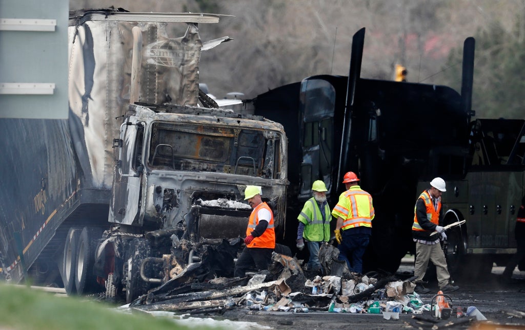 The chain-reaction wreck involving 28 vehicles ruptured gas tanks, causing a fireball that consumed vehicles and melted parts of the highway.