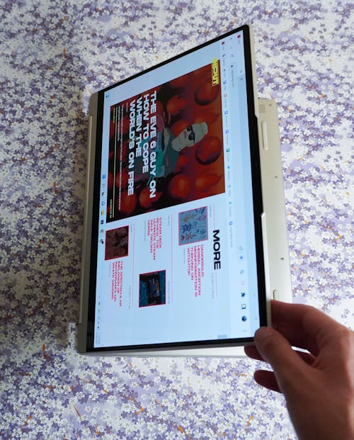 I was equally impressed with the sound performance. The laptop ships with Bowers & Wilkins sound and support for Dolby Atmos, but I think the more important improvement might just be in how the speakers are laid out. There are two tweeters built into the hinge of the Yoga 9i — the theory being it will project regardless of how you fold the laptop — and two subwoofers on either side of the laptop base. The sound is rich and deep, and the Yoga 9i can get loud enough to fill my bedroom with music without sounding distorted. There’s also quick access to audio controls through a dedicated button for switching between audio profiles (Music, Movies, and Games) along the right side of the keyboard. I found myself most drawn to the Movie mode because of how bassy it was, because it turns out I’m basic like that.