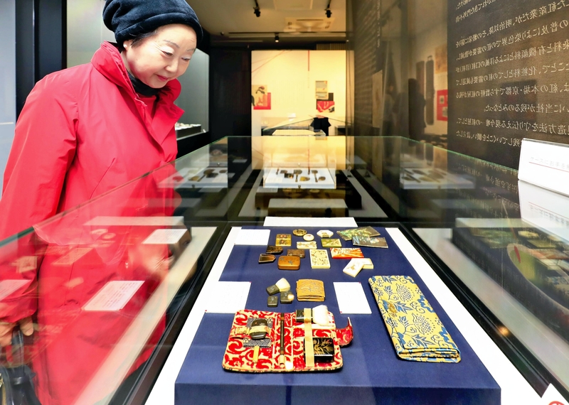 Another item is the ita-beni -- portable rouge cases decorated in a variety of ways, such as with makie gold lacquer or inlay work. These makeup cases suggest Edo women selected their favorite designs and enjoyed applying beni. It made me think that a woman's desire to look good is unchanged, giving us a sense of affinity through time.