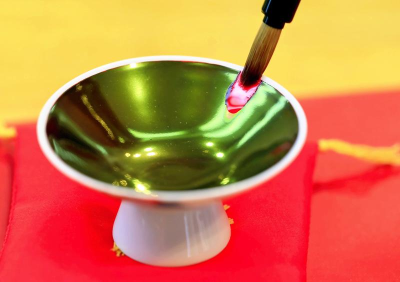 Beni are high-end products created through dozens of processes. When the final color is allowed to dry naturally, it has an iridescent green sheen. But when wet, it turns bright red again.
