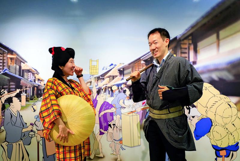 Visitors can even enjoy looking at the stairs, as each step is decorated with images from the ukiyo-e series "53 Stations of the Tokaido."