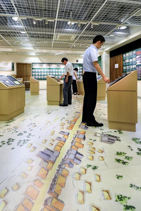 The picture map of the about 1.4-kilometer-long Kawasaki Shuku street is drawn on the floor. Visitors can feel like they are actually exploring the street in the period.