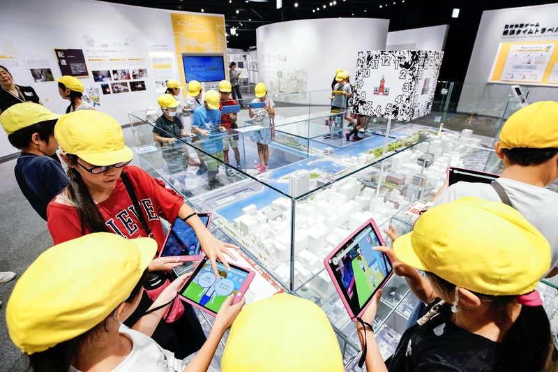 Toward the back of the museum, I saw elementary school students conducting mock news-gathering using augmented reality (AR) technology. When special tablets are placed over a diorama of Yokohama, animated characters appear on screen and provide users with information about the city's history. After selecting which questions to ask, users accumulate information that "results from [their] news-gathering," and is printed on A3-size newspapers. The children looked happy as they read their newspapers.