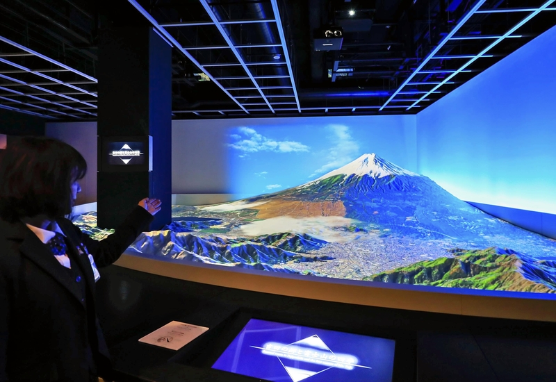 The museum also makes ample use of projection mapping and images in its exhibits. Projections onto a 1:2,000 scale model of Mt. Fuji show how the mountain's colors and other features change with the seasons.