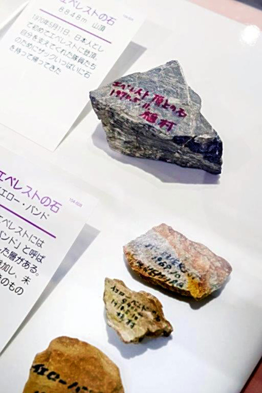 The museum holds four exhibitions every year. A recent show that ended on Sept. 26 was titled "Everest Sekaiichi Takai Basho e" (Everest: To the highest place in the world). The exhibits included the down jacket Uemura was wearing when he reached the peak of Mt. Everest for the first time on May 11, 1970. Also on display was equipment he had used, such as ice picks, and stones he brought back from the top of Mt. Everest. The stones bear his handwritten scribbles, with one saying "a stone from the top of Everest."