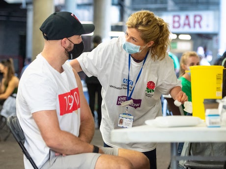 Twickenham Stadium has been converted into a mass vaccination centre as medics battle a surge in the Indian variant of coronavirus.