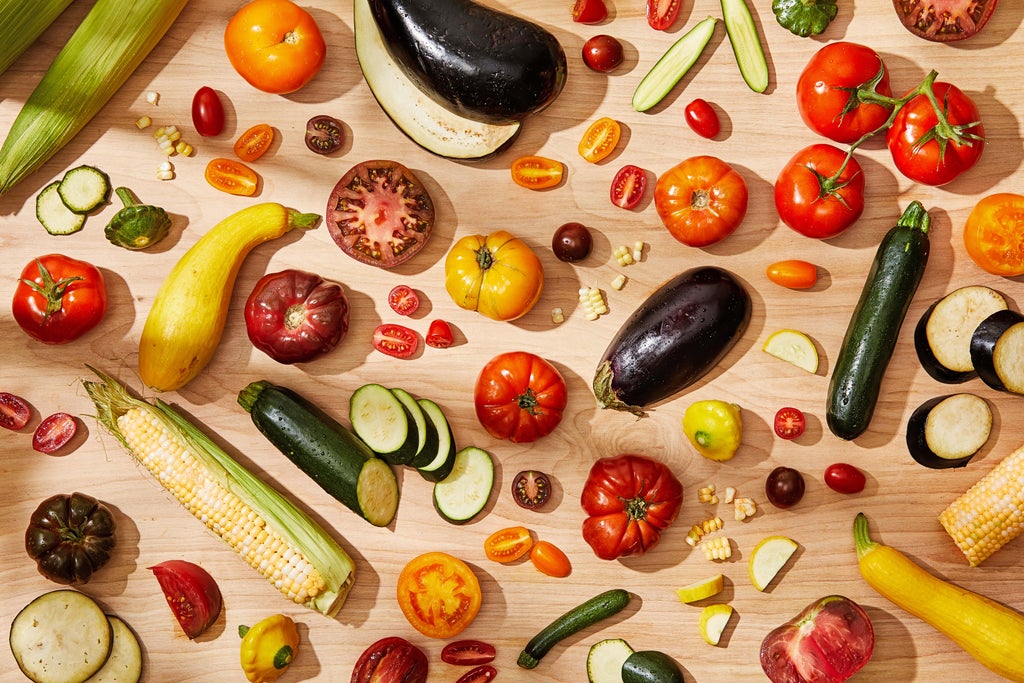 The recipes I came up with draw inspiration from those dishes, and from the exciting and unusual history of the four vegetables highlighted, although three of them – tomato, aubergine and squash – are botanically fruits and the other, corn, is technically a grass. So approach these recipes as a map for what to do with the season's bounty, then let the beauty of what you find fresh guide you.