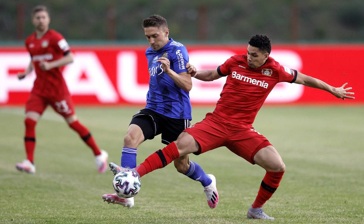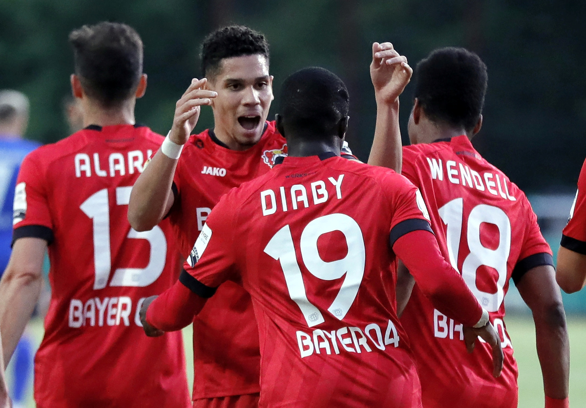 Soccer Football - DFB Cup - Semi Final - 1.FC Saarbruecken v Bayer Leverkusen - Hermann-Neuberger-Stadion, Voelklingen, Germany - June 9, 2020 Bayer Leverkusen's Moussa Diaby celebrates scoring their first goal, as play resumes behind closed doors following the outbreak of the coronavirus disease (COVID-19) Ronald Wittek/Pool via REUTERS Soccer Football - DFB Cup - Semi Final - 1.FC Saarbruecken v Bayer Leverkusen - Hermann-Neuberger-Stadion, Voelklingen, Germany - June 9, 2020 Bayer Leverkusen's Moussa Diaby celebrates scoring their first goal, as play resumes behind closed doors following the outbreak of the coronavirus disease (COVID-19) Ronald Wittek/Pool via REUTERS Soccer Football - DFB Cup - Semi Final - 1.FC Saarbruecken v Bayer Leverkusen - Hermann-Neuberger-Stadion, Voelklingen, Germany - June 9, 2020 Bayer Leverkusen's Lucas Alario celebrates scoring their second goal with teammates, as play resumes behind closed doors following the outbreak of the coronavirus disease (COVID-19) Ronald Wittek/Pool via REUTERSSoccer Football - DFB Cup - Semi Final - 1.FC Saarbruecken v Bayer Leverkusen - Hermann-Neuberger-Stadion, Voelklingen, Germany - June 9, 2020 Bayer Leverkusen's Lucas Alario celebrates scoring their second goal, as play resumes behind closed doors following the outbreak of the coronavirus disease (COVID-19) Ronald Wittek/Pool via REUTERS Soccer Football - DFB Cup - Semi Final - 1.FC Saarbruecken v Bayer Leverkusen - Hermann-Neuberger-Stadion, Voelklingen, Germany - June 9, 2020 Bayer Leverkusen's Moussa Diaby celebrates scoring their first goal with teammates, as play resumes behind closed doors following the outbreak of the coronavirus disease (COVID-19) Ronald Wittek/Pool via REUTERS Soccer Football - DFB Cup - Semi Final - 1.FC Saarbruecken v Bayer Leverkusen - Hermann-Neuberger-Stadion, Voelklingen, Germany - June 9, 2020 Saarbruecken's coach Lukas Kwasniok and Bayer Leverkusen's coach Peter Bosz, as play resumes behind closed doors following the outbreak of the coronavirus disease (COVID-19) Ronald Wittek/Pool via REUTERS Soccer Football - DFB Cup - Semi Final - 1.FC Saarbruecken v Bayer Leverkusen - Hermann-Neuberger-Stadion, Voelklingen, Germany - June 9, 2020 Bayer Leverkusen's coach Peter Bosz, as play resumes behind closed doors following the outbreak of the coronavirus disease (COVID-19) Ronald Wittek/Pool via REUTERSSoccer Football - DFB Cup - Semi Final - 1.FC Saarbruecken v Bayer Leverkusen - Hermann-Neuberger-Stadion, Voelklingen, Germany - June 9, 2020 Saarbruecken's Tobias Jaenicke in action with Bayer Leverkusen's Kerem Demirbay, as play resumes behind closed doors following the outbreak of the coronavirus disease (COVID-19) Ronald Wittek/Pool via REUTERS Soccer Football - DFB Cup - Semi Final - 1.FC Saarbruecken v Bayer Leverkusen - Hermann-Neuberger-Stadion, Voelklingen, Germany - June 9, 2020 Bayer Leverkusen's Paulinho in action with Saarbruecken's Daniel Batz, as play resumes behind closed doors following the outbreak of the coronavirus disease (COVID-19) Ronald Wittek/Pool via REUTERS