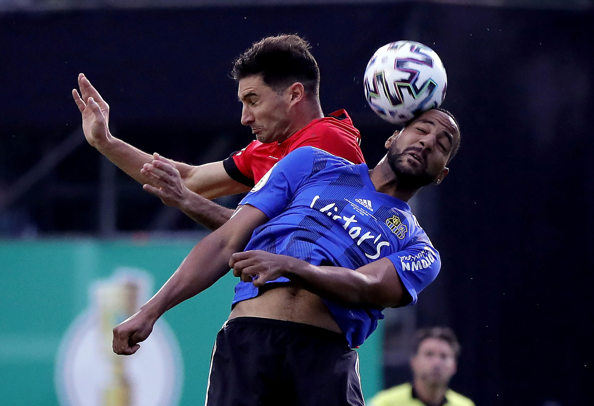 Saarbruecken's Markus Mendler miscued his effort in front of goal to squander their best chance for a consolation on the stroke of fulltime.