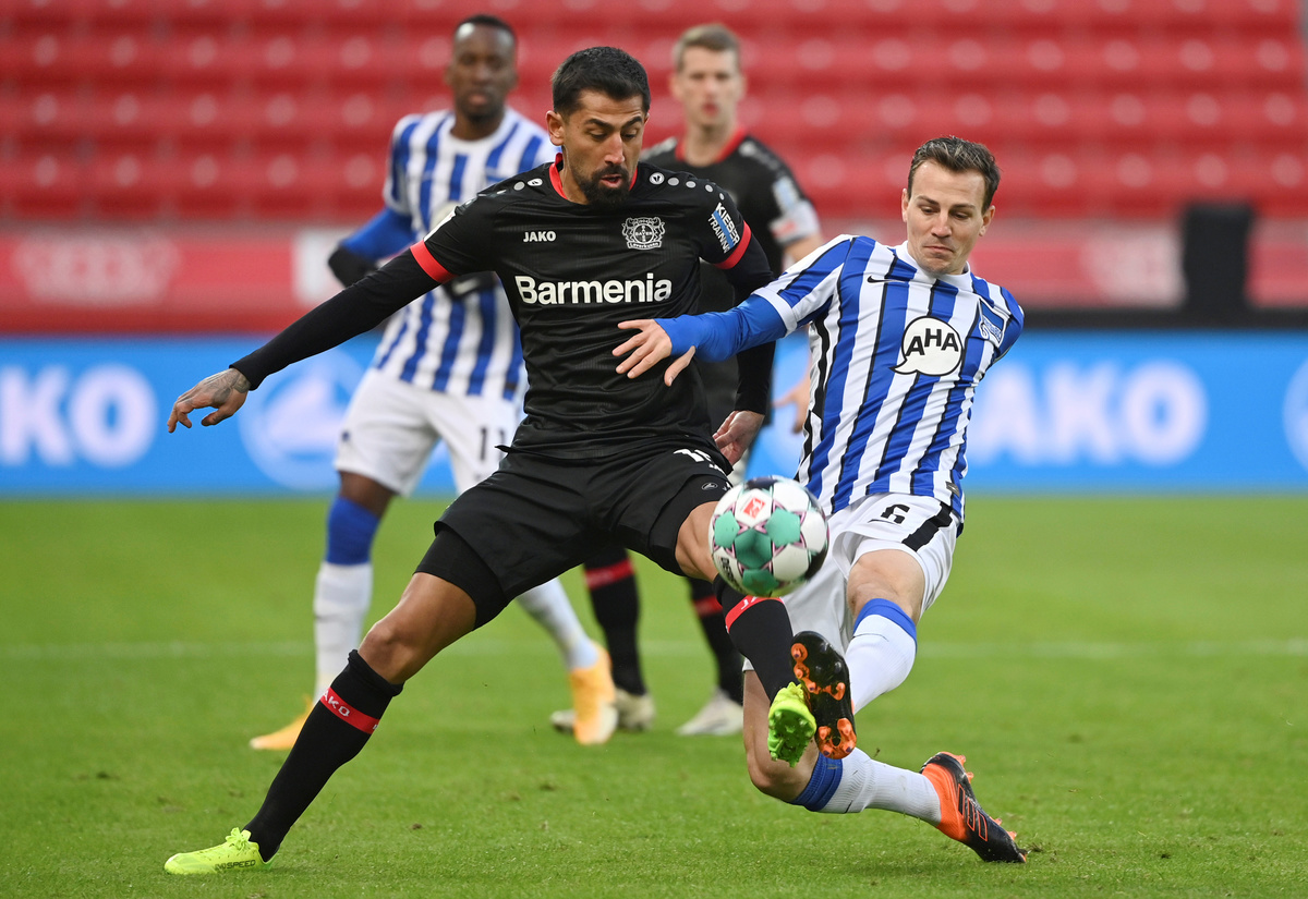 Bayer Leverkusen ended their five-game winning run in the Bundesliga with an uninspiring 0-0 draw against visitors Hertha Berlin on Sunday, missing their chance to take over second place.