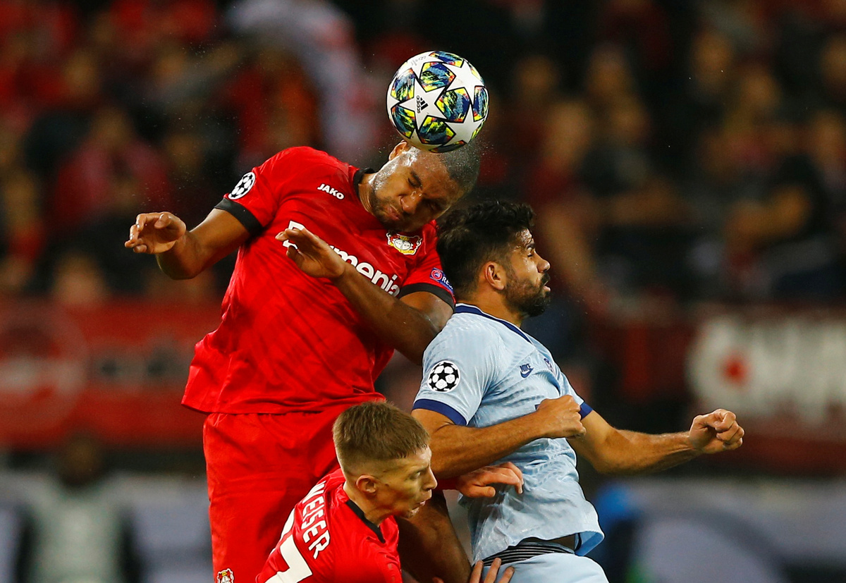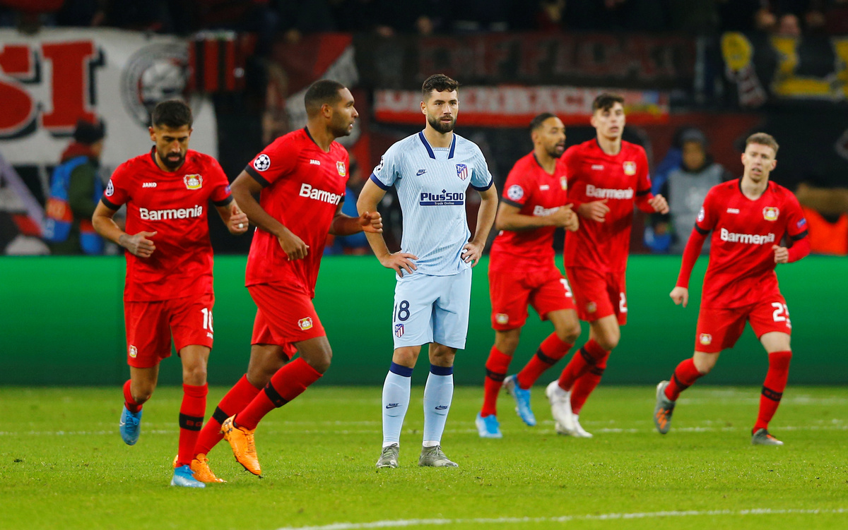 Soccer Football - Champions League - Group D - Bayer Leverkusen v Atletico Madrid - BayArena, Leverkusen, Germany - November 6, 2019 Atletico Madrid's Diego Costa in action with Bayer Leverkusen's Mitchell Weiser and Jonathan Tah REUTERS/Thilo SchmuelgenSoccer Football - Champions League - Group D - Bayer Leverkusen v Atletico Madrid - BayArena, Leverkusen, Germany - November 6, 2019 Atletico Madrid's Mario Hermoso in action with Bayer Leverkusen's Karim Bellarabi REUTERS/Thilo SchmuelgenSoccer Football - Champions League - Group D - Bayer Leverkusen v Atletico Madrid - BayArena, Leverkusen, Germany - November 6, 2019 Bayer Leverkusen coach Peter Bosz speaks to Wendell REUTERS/Thilo SchmuelgenSoccer Football - Champions League - Group D - Bayer Leverkusen v Atletico Madrid - BayArena, Leverkusen, Germany - November 6, 2019 Atletico Madrid coach Diego Simeone reacts REUTERS/Thilo SchmuelgenSoccer Football - Champions League - Group D - Bayer Leverkusen v Atletico Madrid - BayArena, Leverkusen, Germany - November 6, 2019 Atletico Madrid's Renan Lodi in action with Bayer Leverkusen's Mitchell Weiser and Karim Bellarabi REUTERS/Thilo SchmuelgenSoccer Football - Champions League - Group D - Bayer Leverkusen v Atletico Madrid - BayArena, Leverkusen, Germany - November 6, 2019 Bayer Leverkusen fans inside the stadium before the match REUTERS/Thilo Schmuelgen