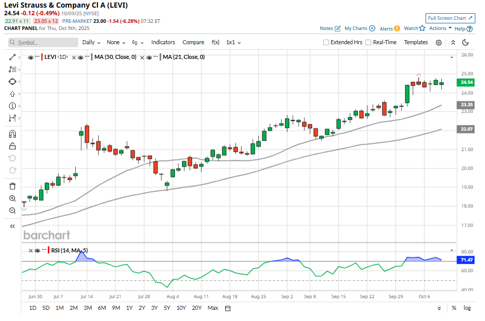 The market’s reaction came on the heels of the stock’s stellar run in the recent past. Ahead of earnings, Levi’s shares had touched a new 52-week high of $24.82, climbing more than 64% over the past six months. Expectations were running high, and the stock’s pullback suggests that investors may have been looking for stronger forward guidance to justify further gains.