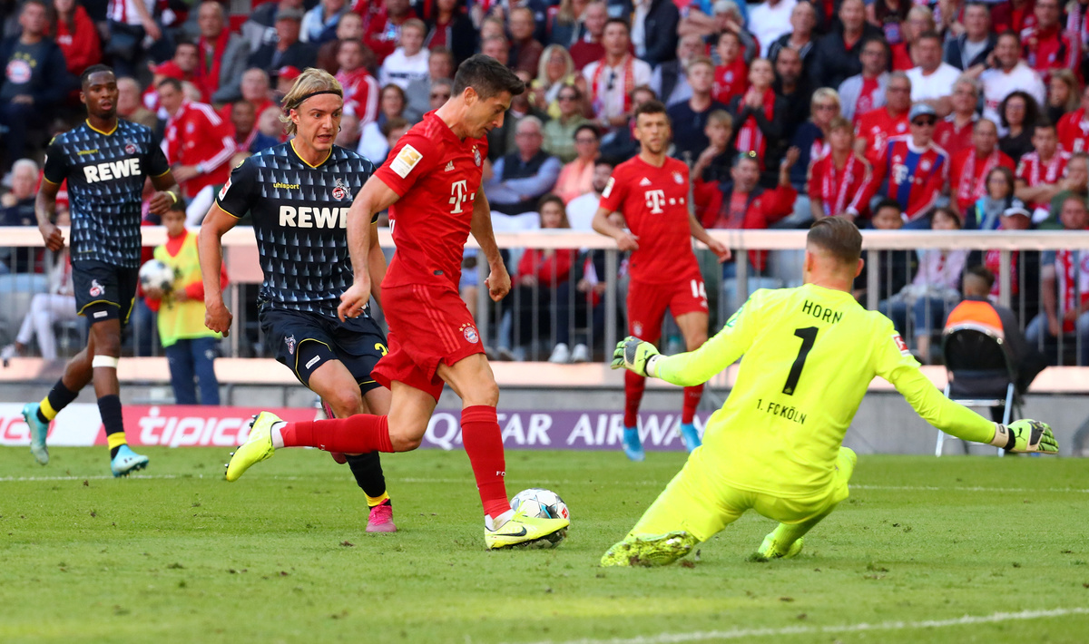 Poland striker Lewandowski grabbed Bayern's first two goals and, after Cologne's Kingsley Ehizibue was sent off, Philippe Coutinho converted a penalty to make it 3-0 and Ivan Perisic completed the rout with a low shot.